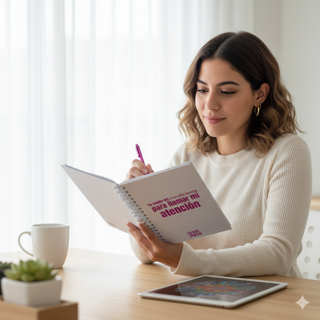 Nuestra libreta es ideal para anotar pensamientos, listas, planes, bocetos o lo que te inspire cada día. Con un diseño moderno y práctico, es ligera, resistente y lista para acompañarte a todas partes.